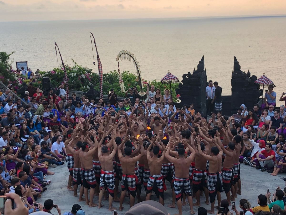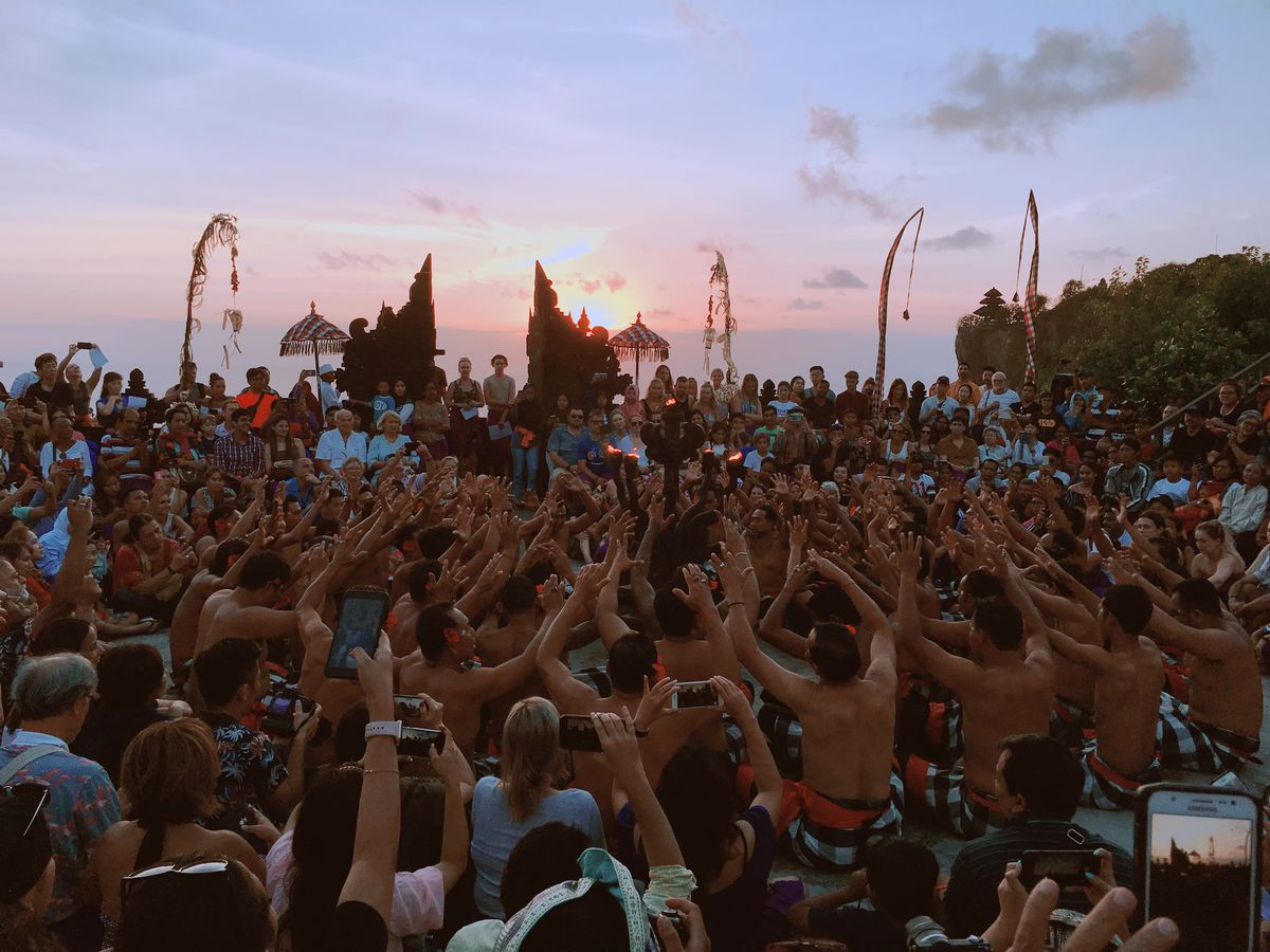 ケチャックダンスは各国の観光客で一杯で、座れる席は運だと思います。早く行って座席を取ろうということで、17時20分くらい(開始40分前)に入りましたが、前のほうには座れませんでした。
