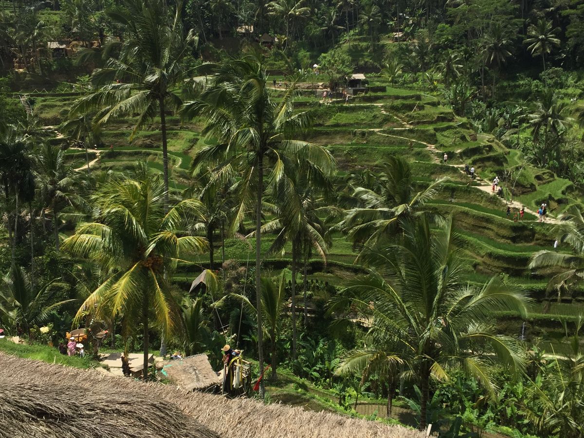 棚田をみたり、ウブド街歩きの後、おしゃれなレストランでナシチャンプルの食事をとり、午後はお昼寝しながら移動しました。
