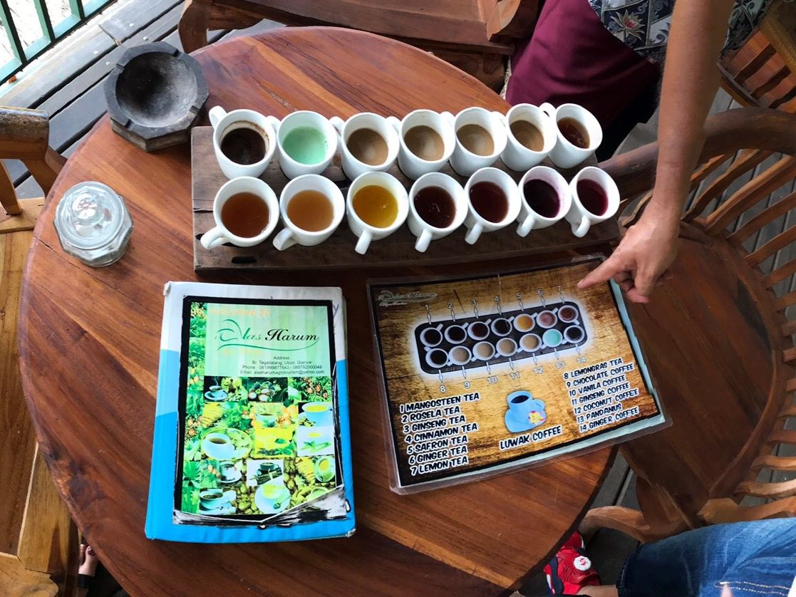 テガラランの北側にあるBali Pulinaという場所。ジャコウネコがみれたり、ジャコウネココーヒー以外のコーヒー、紅茶は小さなカップで試飲させてもらえました。ジャコウネココーヒーは1杯50000ルピア(400円くらい)。