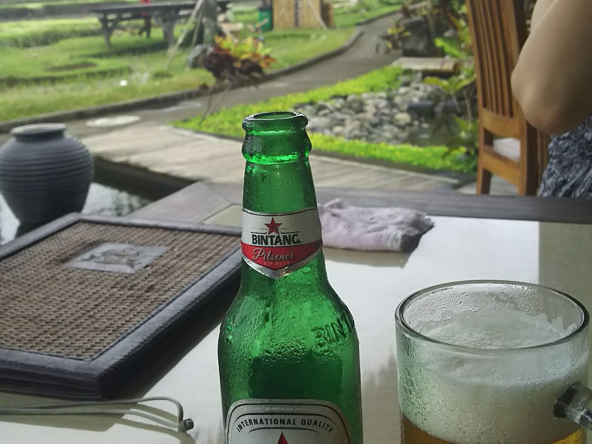 その後、有名なテガラランの棚田に行きました。ガイドブックの写真そのものの風景にしばらく見入り、そのあと回ったゴア・ガジャ寺院では有名な洞窟入口で家族そろってハイチーズ。ガイドのスーヤッサさんは、4人での家族写真を撮りたいときにはすぐに気付いてカメラマンを申し出てくれたので、とてもありがたかったです。その後ウブド郊外のレストランへ。ここで昼食を食べましたが、のどかな田園風景を見渡せるテラスで、さわやかな風に吹かれながら、インドネシア料理にビンタンビール!至福のひとときを過ごしました。