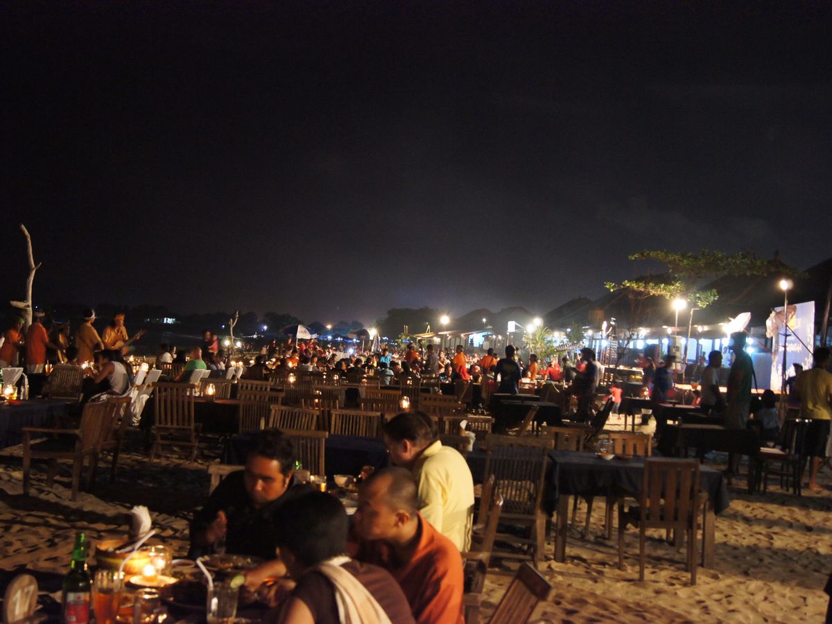 夕食は、お店を決めていなかったので、ジンバランのイカン・バカールのお店に連れて行ってもらいました。2人で1万円弱と予想したより高いお店でしたが、味はとてもおいしく、バリで食べたものの中で一番でした。最初、メニュー横の値段を見た時に、「あら、やられちゃったかな」と思いましたが、お値段ほどの価値はありました。