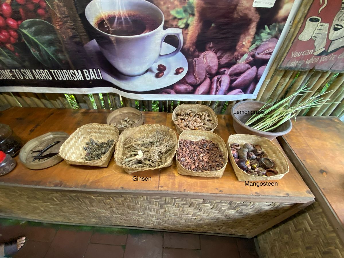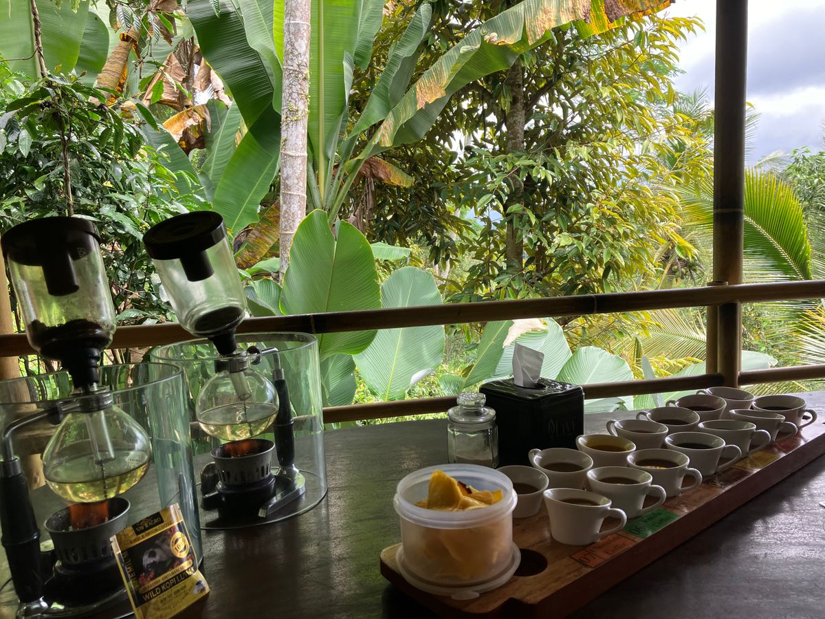 序盤に、キンタマーニ高原からウブド高原の間にコーヒー休憩を入れることを提案してくださり、ぜひとお願いしたところ、Santi coffee plantation というところに寄ってくださいました。有名な Kopi Luwak を作っているところで、実際にジャコウネコも飼われており、他のコーヒーの試飲とともに Kopi Luwak を飲むことができました。2人で行ったこともあり、オス・メスの両方の味の比較ができたのも貴重な体験でした。(確か1杯400円ほどだったかと思います)