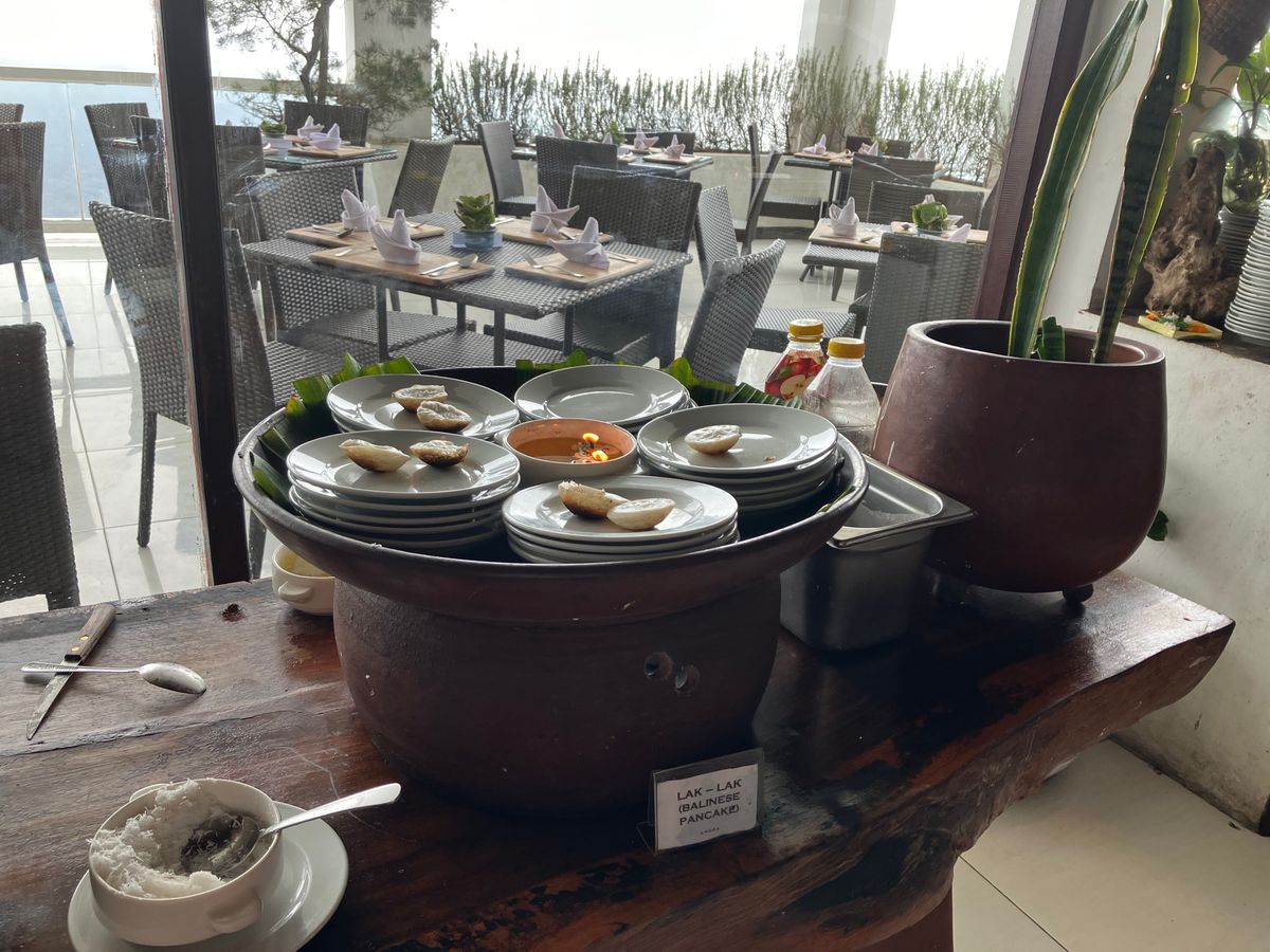 キンタマーニ高原はギリギリ山の頂上まで見えましたが、スコールが多いバリでは見えないこともあるよう。ご飯はバイキングでした。車酔いでほとんど食べられなかったので、オーダー制の方が有り難かった。味はそこそこです。