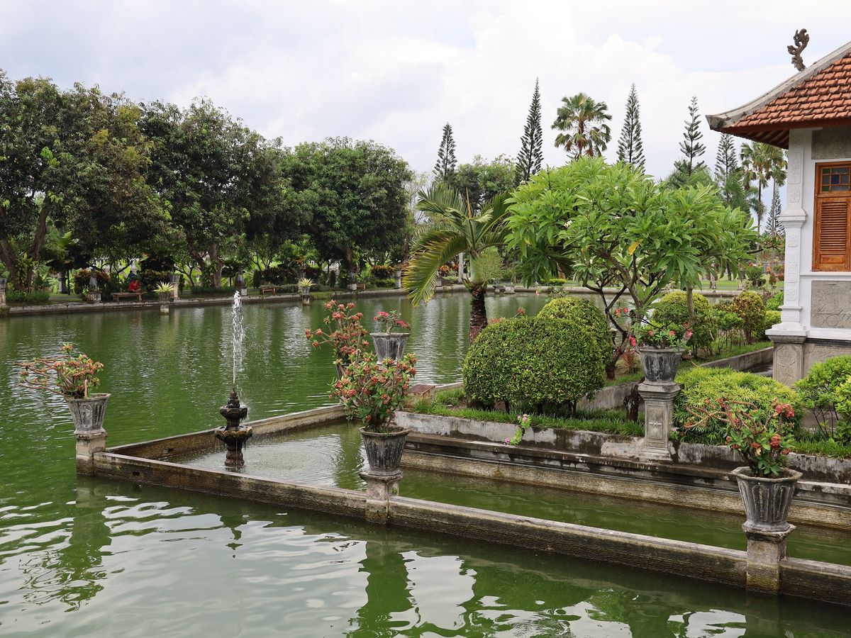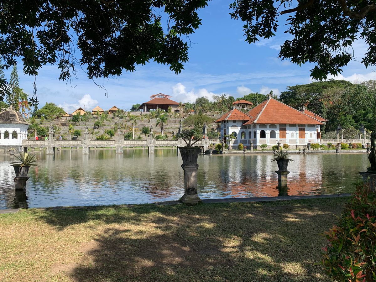最後にウジュン。ここはタマン・スカサダ・ウジュンと言って、かつての王によって建てられた水の王宮跡です。先ほどのティルタ・ガンガより大きな池が庭木と共に整備され、大きな庭園となっています。歩いて回るだけで心が落ち着き、ティルタガンガとは違った趣があります。大小の木々が一本一本きれいに配置され、一日居ても飽きない感じでした。
