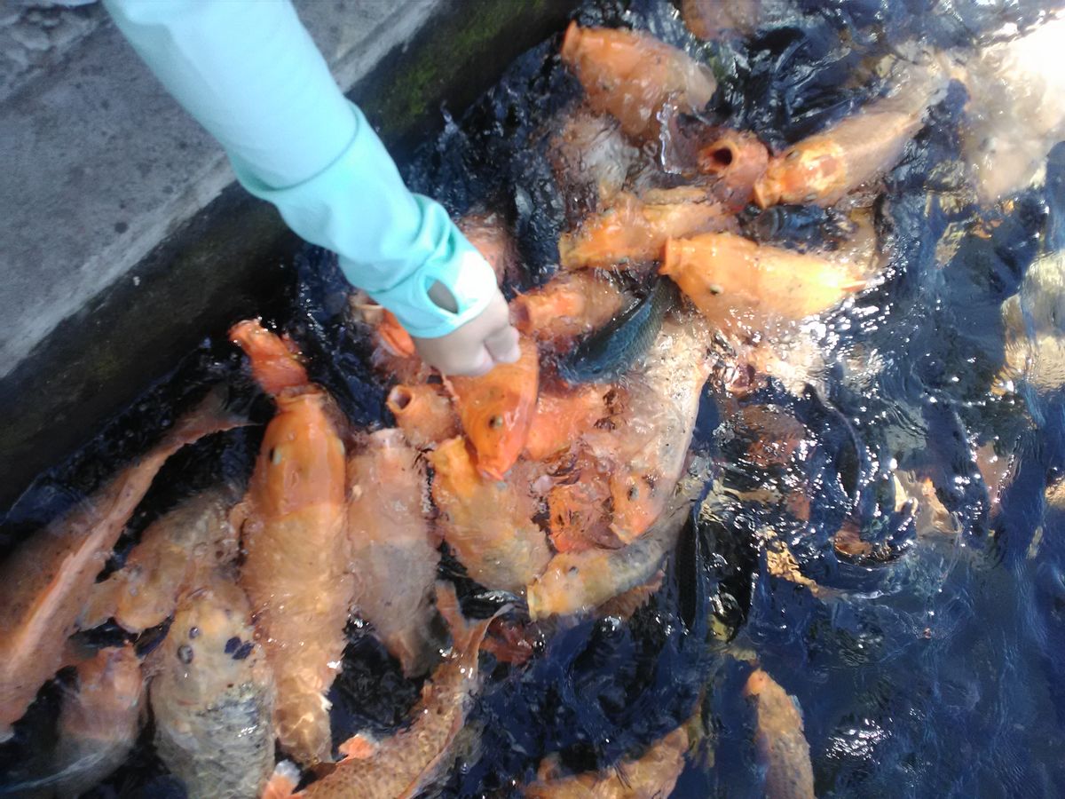 ③ティルタ・ガンガは、写真スポットらしく、他の外人さんで賑わっていました。巨大な鯉が泳いでいて、餌を買って(50円ほど)あげると、寄ってきて楽しかったです。