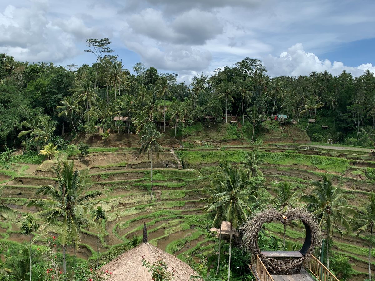 途中、喫茶店に立ち寄り休憩。コーヒーの実を食べるジャコウネコの糞のコーヒーをいただく。猫の糞と聞いて、?!と思いましたが、健康には非常に良いそうで、味は…コーヒーでした。また、きれいな棚田を背景に空中ブランコがあり、女性に人気。うちの嫁も例に漏れずやってみたいと挑戦。インスタ映えするブランコでした。
