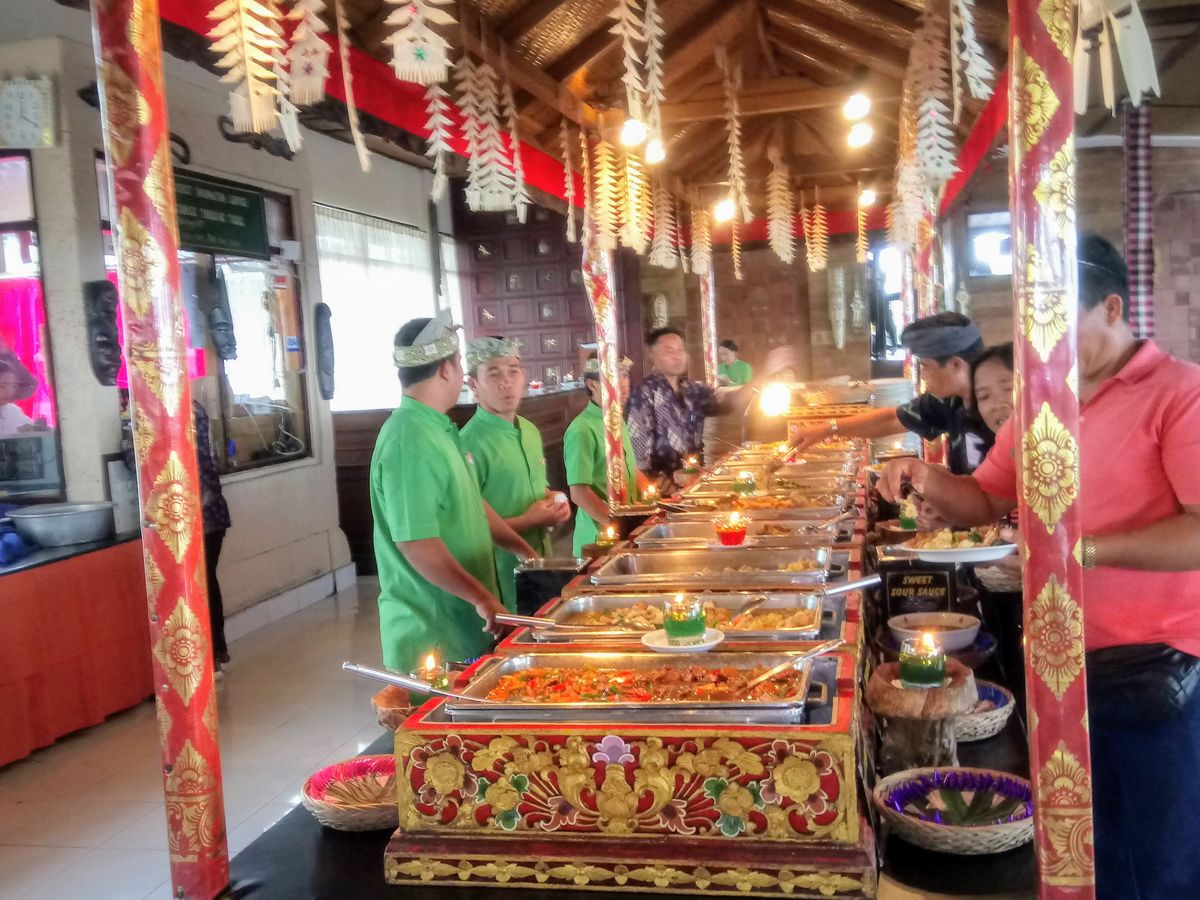 昼食はMAHAGIRIという第6代大統領の名前を冠したレストランで、ビュッフェ形式の食事でした。ナシゴレン・ミーゴレン・春巻き・豆腐料理などインドネシアの伝統料理を食べることができました。