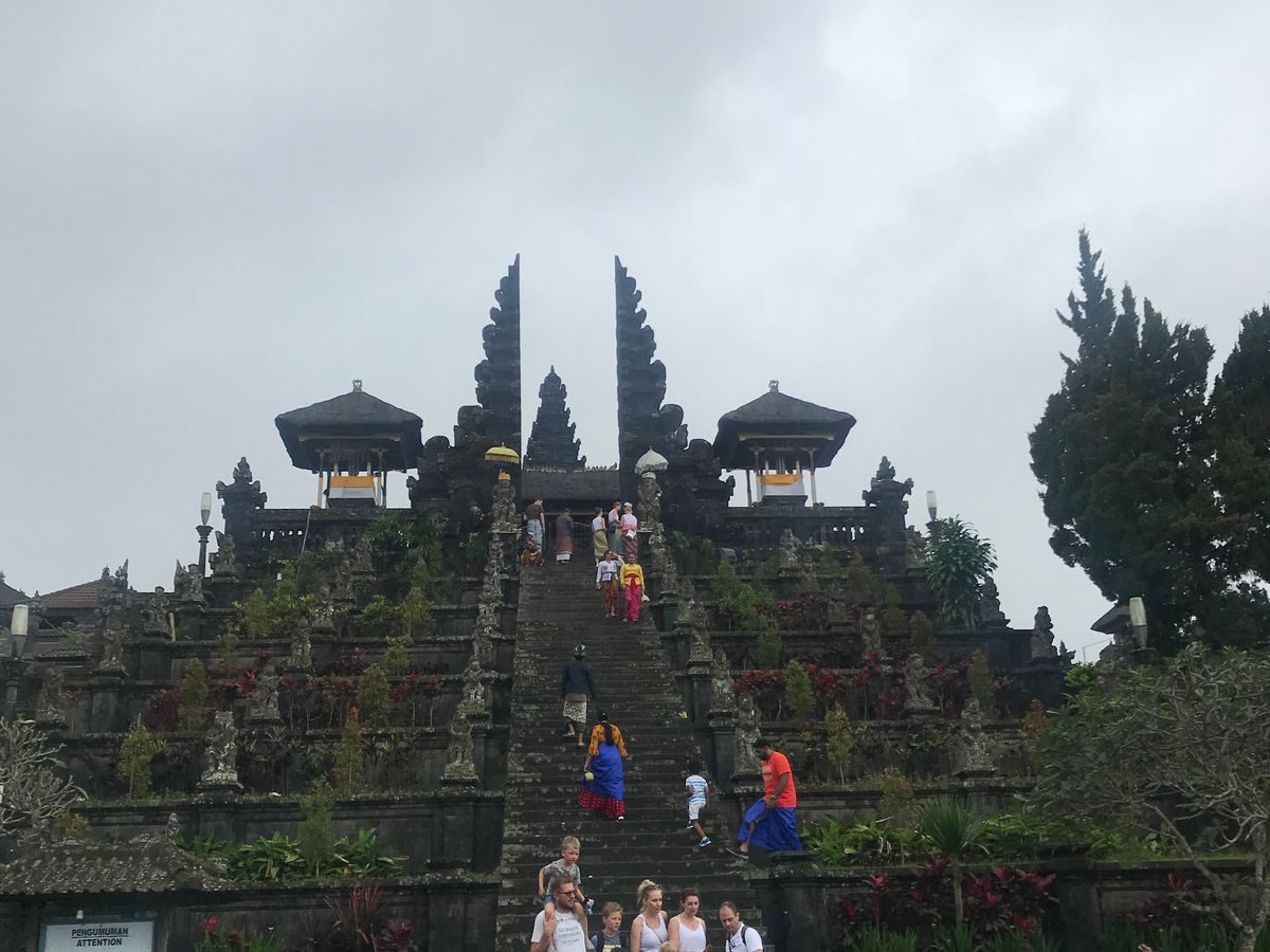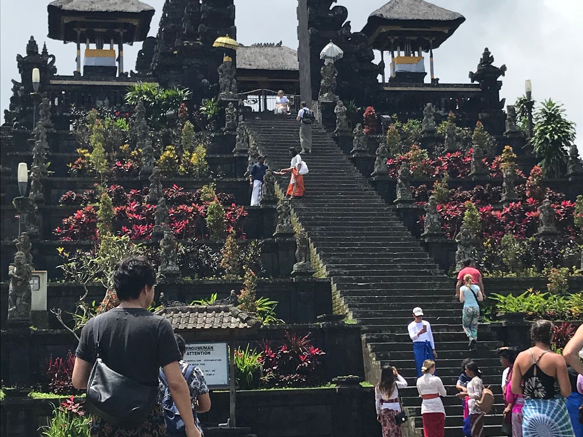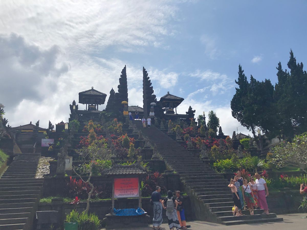 ブサキ寺院は2017年年末から何度も噴火しているアグン山の山麓にあって、ほかのツアーはほとんど中止していた場所。私がツアーを探しているときに唯一ツアーに組み込まれていたのがこのツアーでした。行ってみれば現地はヨーロッパ系の観光客ばかりでアジア人はほとんどいませんでした。バリヒンドゥー特有の建造物の奥には青空とアグン山が見えていて、とても感動しました。気になる方はぜひ行ってみるべきバリ島ナンバーワンのパワースポットです。行く前は少しドキドキしていたのですが、バリのガイドさんと話してみると、噴火もあまりたいしたことないようで(油断は禁物ですが)日本の桜島みたいなもんかなという感覚でした。行ってよかった。私が訪れてから10日後にまた噴火していましたので、行ける時にぜひ行ってくださいね。