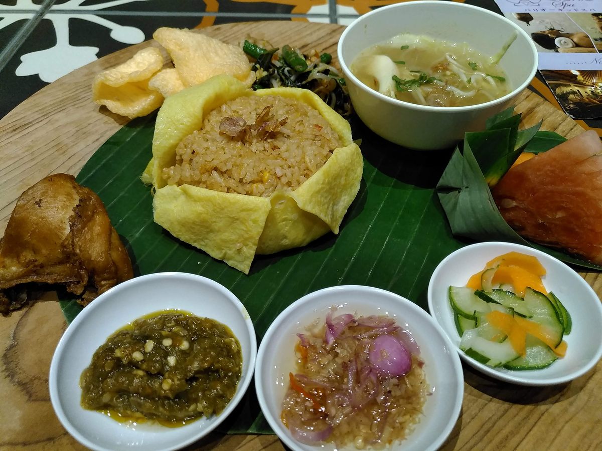 食事は私達の時は、昼がインドネシアのバイキングで、夜はちょっとした舞踊を見ながらインドネシア料理を食べました。とても美味しかったです。