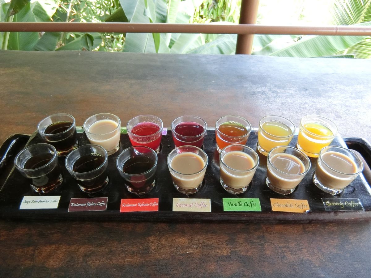 観光コースは、①ルコックコーヒー農場、②キンタマーニ高原とバトゥール湖、③スマスプラ王宮跡、④クサンバ塩田でした。