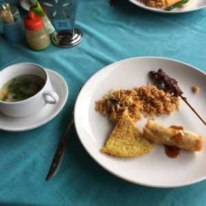 水っぽいものが欲しかったので、別料金で頼んだミックスジュースを飲んだ後フルーツを取ろうとしたら、「デザート、後」と女性店員に塞がれ取ることが出来ず、仕方なく食事を食べたらもうフルーツは入らなくなりました。バイキングなのに好きなものを食べられないなんて信じられません。さらにお会計も何の断りも無く400ルピアお釣りが少なかったです。あめ玉も無しです。ガイドさんには伝えた上で、お店には言わなくて良いと言いました。二重に気分の悪い思いをしました。