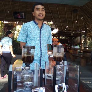 その後、キンタマーニに寄れたら行きたいと話していましたが、あいにくの雨なのでお金ももったいないからドライブスルー、その後コーヒーの所へ。日本語の出来る店員さんにコーヒーの木の説明を受けながら、奥に進んで、作業風景(多分観光用)を見せて貰い、試飲セットと別料金でメス5万、オス8万ルピアのルワックコーヒーを注文。あちこちで飲んですっかり気に入っていたレモングラスとジンジャーティー、そしてメスのルワックコーヒー豆50グラムを購入。もう閉店時間だったみたいで、帰る時にゲートを開けていました。さすが観光立国。