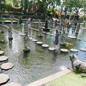 水の離宮 (ティルタガンガ)は、「ガンジスの水」という意味で、インドのガンジス川にちなんで付けられました。 水の離宮 (ティルタガンガ)は、バリ東部のアグン山のふもとに、アングルラー・クトゥッ王が週末に利用する離宮として建設されたものです。 今も水が湧き出るところには寺院が建っており、儀式のときには聖水として使用されます。 この水は、アグン山から流れ落ちてくるものです。 観光客は多くなく、地元の人たちの憩いの場として親しまれています。