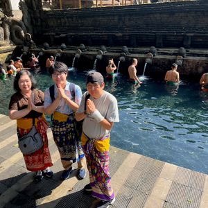 ちょっと高いな、と思いつつ申し込みましたが、全然高くなかった!至れり尽くせりの素晴らしい内容のツアーです。車は貸切で、無駄なく、バリ島中の名所に運んでくれます。そして何と言っても、ガイドさん(ウィスパーさん)のレベルが秀逸!日本語スキルはもちろん、お人柄(優しくて、大学生の息子と意気投合)、仕事の早さ(それを感じたのは大混雑のケチャダンスの席とり)、どれをとっても一流で、一日中最高に楽しく過ごせました。沐浴もやるかどうか迷ったけど、やってよかったです。50代夫婦、18歳息子、高校生の娘、全員大喜びでした。