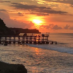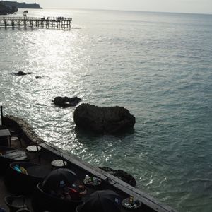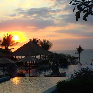 バリにきたら皆がいくであろうロックバーへ。夕日はとてもきれいで、行くだけの価値はあります。しかし、夕日を待つ間がとてもつらいです。日差しが強く、日傘をさして待つのですが、なんとも異様な光景。夕食もついていますが、日本人の好む味付けですが、量が多い。もう少し値段が安いのであればまた行きたいなと思いました。プールでもよかったかな。