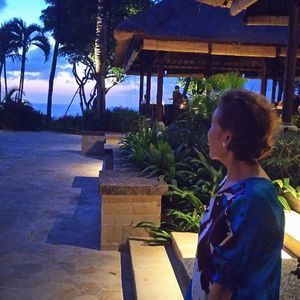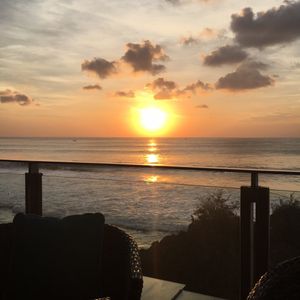 様々な体験談読ませて頂き、今回の旅で絶対に行きたい場所でした。アヤナとなりましたがリッツカールトンのラグジュアリーな雰囲気をそのままにとても素敵なホテルです。エントランスから望む景色にまず感激。過行くオープンレストランを横目に崖の方に歩みを進め期待が高鳴ります。ケーブルカー(8人乗りくらい)の乗り場には警備犬を連れたガードマン、そして黒服のロックバー従業員。眼下に望むインド洋の照り返しに目を細めながらケーブルカーからロックバーの全貌を望みました。降り場には10名ほどの黒服のお姉さんたちが並んで合掌と笑顔で迎えてくれます。お席はまだ3割ほどが埋まっている程度。私たちは海側2階の素晴らしいソファ席に案内頂きましたが時間は四時半前、日差しが強くパラソル(自分で持つ)と冷えたおしぼりが提供されました。母はその後5回ほどおしぼりを頼みましたが全く嫌な顔はされません。ワンドリンク付きということでこの暑さでは足りないかなと思いましたが、おつまみの野菜チップスはどんどん提供してくれますしノンアルコールのドリンクはメイソンジャ-入りでサイズ感あるものでした。5時過ぎには日差しも和らぎサンセットタイム。やたら私たちの席の前にやってきては写真を撮るカップルが多く気になって振り返ると席待ち客が大勢立ち見状態。暑かったけれど早めに来て正解でした。6時半前に席を立ちましたが上りのケーブルカー待ちが列になっていました。やがて乗れてサミサミへ。壁のないバリ舞踊の舞台のようなしつらえで地上から数段上がったフロアなので夜風が心地よく抜けていきます。お席も静かなコーナーの良いお席でした。イタリアンのフルコースは若干薄味ですが日本人の舌にあっていると思います。量が多く息子たちも大満足でした。ウェイターさんはドリンクやお料理を提供する度にその感想を聞きにきてくれる徹底ぶり。さすがアヤナです。サンセットのロックバー、サミサミの秀逸なイタリアン、従業員、雰囲気、すべてが五つ星でした。時々マナーがなってない中国人観光客がいます。バリの高級リゾート(アヤナ、リッツ、フォーシーズン)は中国人客でいっぱいです。
