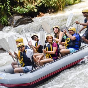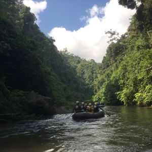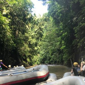春休み期間にバリ島のウブドのアユン川でラフティングをしました。日本でも水上や冨士川でラフティングをした経験がありましたが、バリのラフティングは10kmと長く時間も2時間ととても楽しめました。特に最高だったのは、約20mの高さの滝から落ちる水の下で打たれる経験でした。そして現地のガイドはとても優しくユーモアがあって、すぐに意気投合しました。ラフティングの後のランチもボリュームがあり美味しかった。バリ中心部のクタのホテルへの送迎をしてもらい、6000円位の費用はリーズナブルです。これから日本から来る旅行者にも超オススメのアクティビティです。チャンスがあれば、ぜひまた来たい、素晴らしい企画でした!!