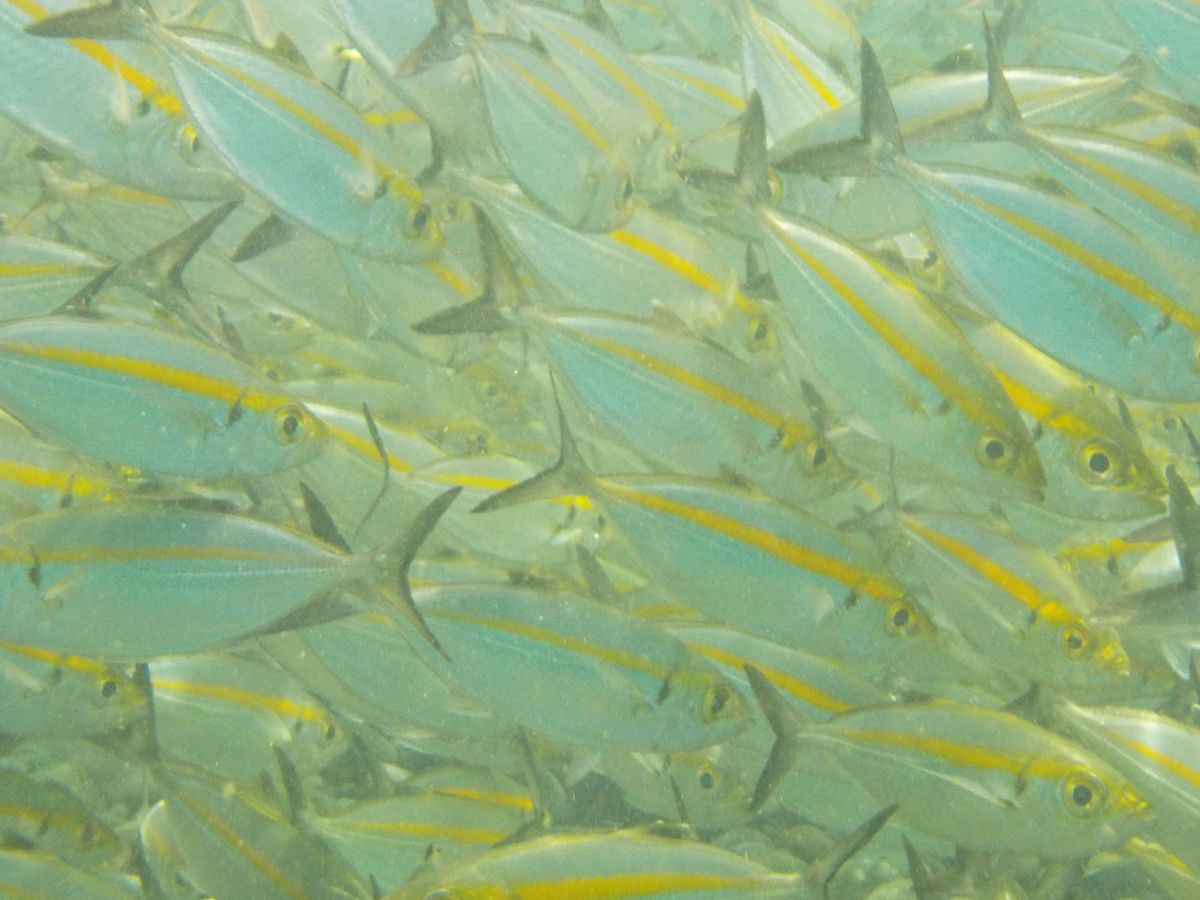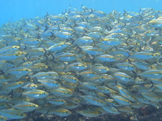 シュノーケリングで見る上からのアジ玉もきれいでしたが、ダイビングにて横から見るアジ玉のキラキラ感がたまりませんでした!