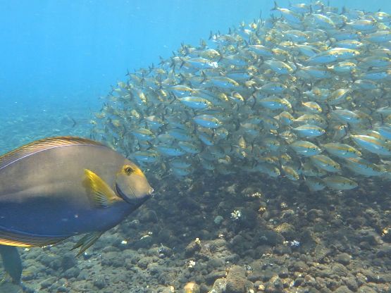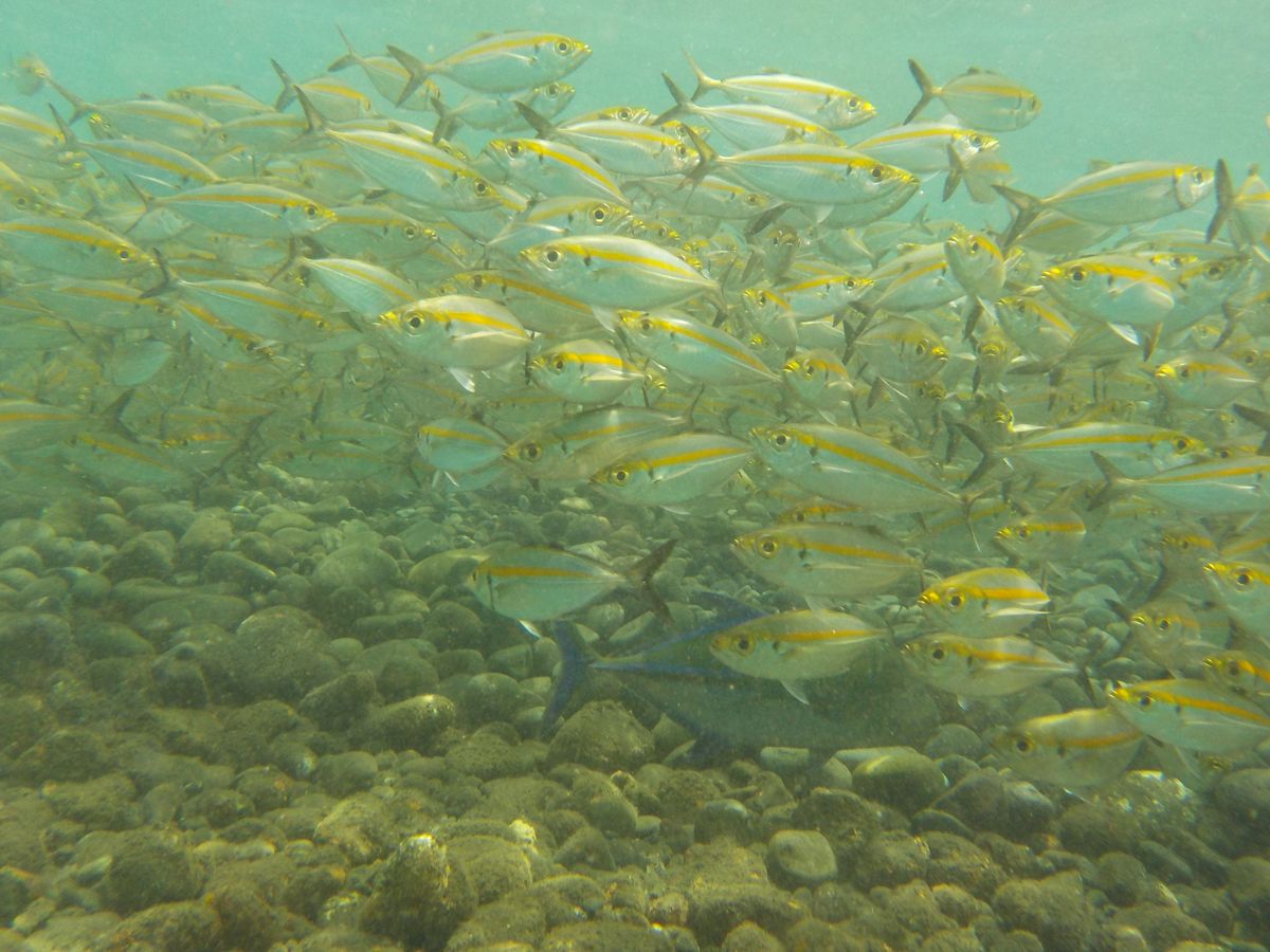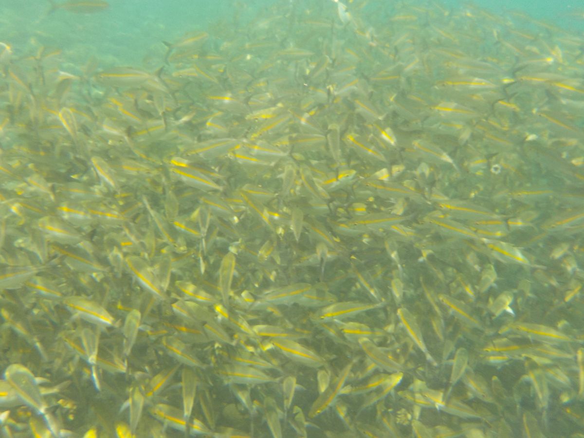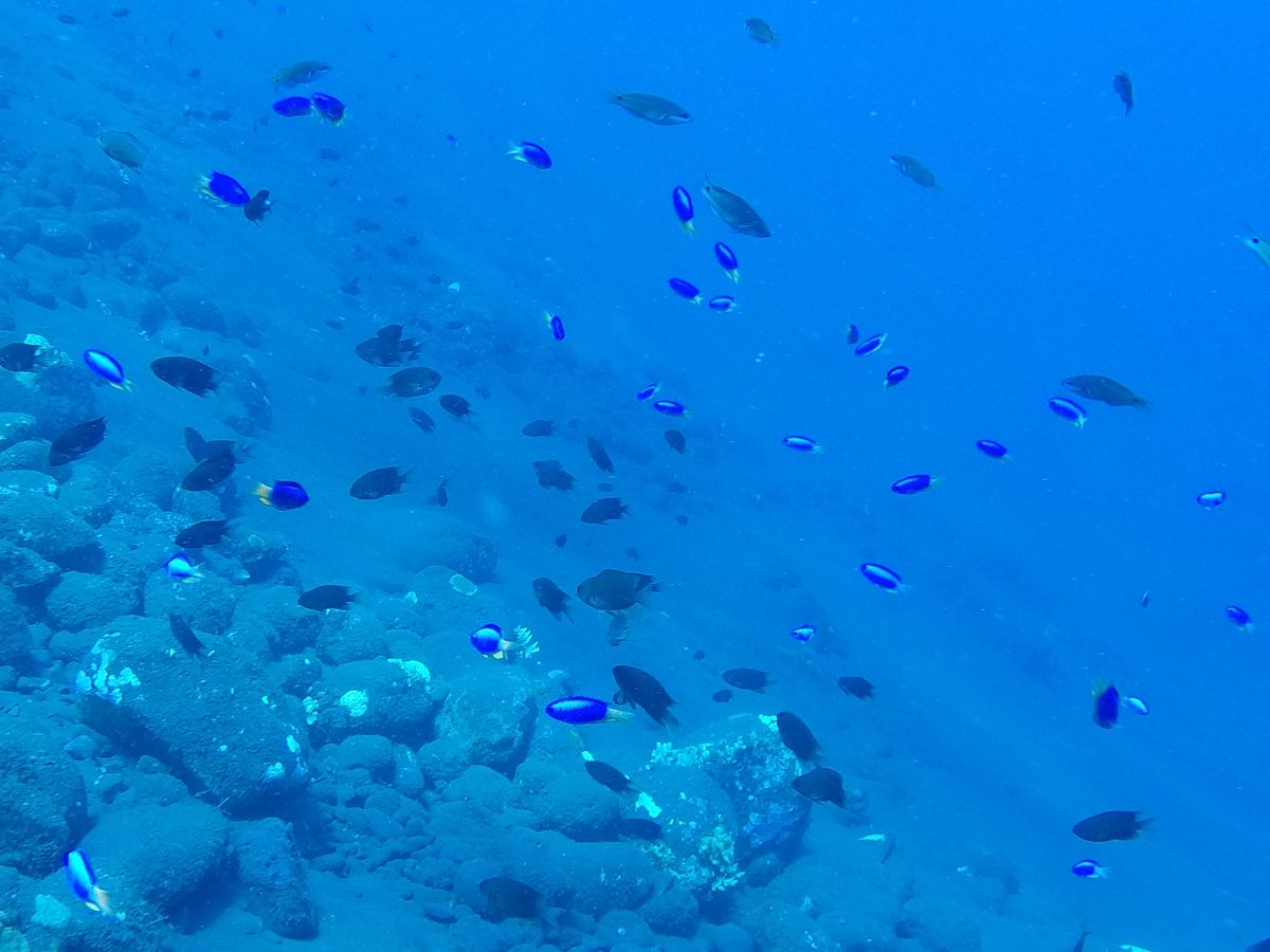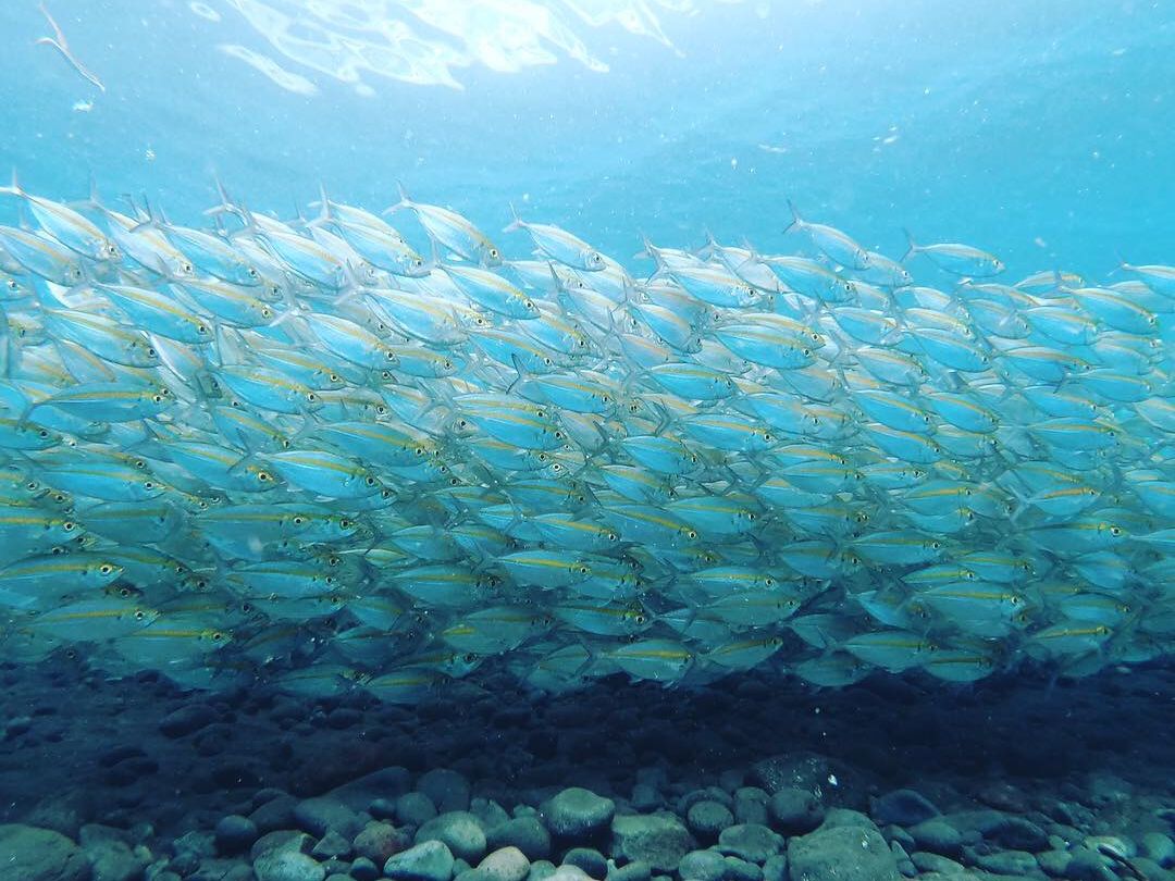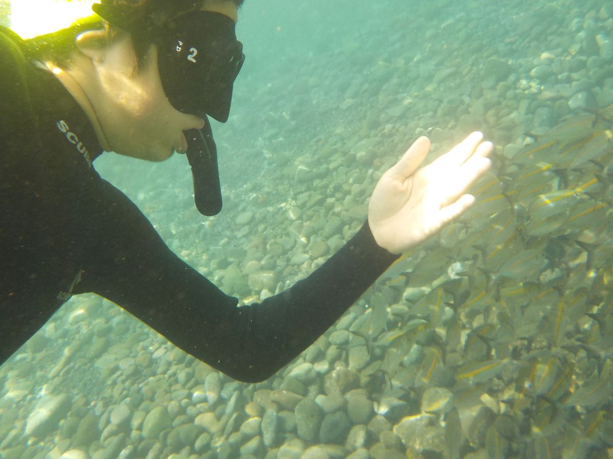 前日は雨が降っていたので海のコンディションが心配でしたが、当日は天気にも恵まれ魚の大群が見れたので良かったです。