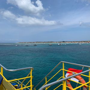 クタビーチなど、バリ島内のビーチはあまりキレイではありませんし、写真映えもしませんでした。それがたった1時間程度で、こんなにもキレイなビーチに出会えるなんて。レンボンガン島、最高です。移動の船では、生バンドが演奏をしていたり景色や風を感じることができたり。もちろん日焼けがきになる方は、冷房の効いた室内で余裕をもって座れる席がたくさんあります。とにかく最高でした。ランチビュッフェも豪華で、インドネシア料理を堪能することができました。