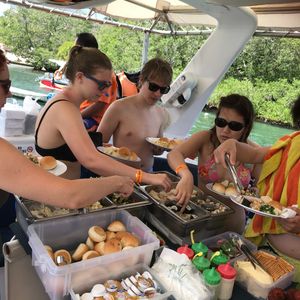 揺れが凄いので酔い止めを先に飲んだ方がいいです。私は酔って吐きそうになりました。止まっていてもボートは常に揺れているので、昼食がボート上なのは食べにくいです。味はまあまあ美味しかった。シュノーケル目的で行ったので二回しか潜れないのが残念。一回の時間が短く、パンを投げて魚を寄せるのをもっとやって欲しかった。雨季だからか水の透明度もまあまあでした。途中謎の島に上陸し、橋を渡って帰ってくるくだりは無くて良いと思います。その分潜りたい。プライベートビーチクラブは綺麗で良かったです!