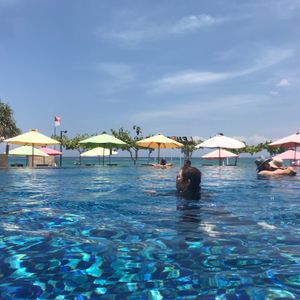 ・お昼は、島のビーチハウスでのランチビュッフェ形式でインドネシア料理が中心で美味しかったです。プールも常設されていて、ゆっくり休むことができます。