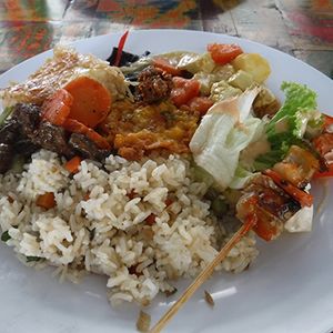 島に上がりバイキング形式で飲み物だけ別途料金でしたが、お料理は美味しくてどれも口に合いました。(ただ、バリはどこにでもハエが居ますが、こちらにも沢山いました)