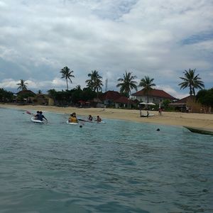 バナナボートは程よい迫力で振り落とされる事なく無事に終了。海でのレジャーが終わると、また高速船に乗りレンボンガン島へ。着いたらすぐにシーカヤック。ガイドさんの説明を受け2人乗りのカヤックに乗り自由に海岸から出発。30分程度綺麗な海を堪能しました。