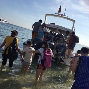 ビーチは海水も透き通っていてとてもきれいなのですが、波が高く遊泳エリアも狭く、その上砂浜に貝殻が多く、波打ち際で長時間楽しむ事ができません。小さな子どもがいると結局小さなプールで遊ぶ事になってしまいます。また、船がかなり揺れるので船酔いが心配な方にはおすすめできません。酔い止めがもらえるので、乗船前に服用し外の風に当たっていれば大丈夫でしたが、船内で多くの方が口元に袋を当てているので船内にいるのも苦痛です。島でのアクティビティの殆どが島からボートで離れた場所や浮島で行う事になるので、大人や大きいお子様でしたら楽しめると思います。浮島も波があるので、酔いやすい方は要注意です。