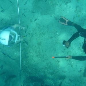 体におもりをつけてヘルメットみたいなものをかぶって潜るのですが、いざ水中に入ると不便なこともなく快適でした♪インストラクターの方が1人1人についていてくれるので安心です。