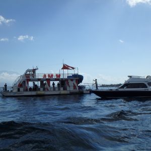 正直がっかり点が多い。まずロッカーが有料。自分は貴重品は持っていなかったので借りなかったのでレンタル料は不明。ロッカーの数も少なく参加者全員分は確保できていないと思う。ほとんどの客は利用せずテーブル席に放置している状態だった。客層はが中国人がほとんどで、韓国人が少数。欧米人はあまり見かけなかった。自分以外の日本人にも今回のツアーでは気が付かなかった。次に、ポントゥーンの場所が悪い。おそらくレンボンガン島?とペニダ島の間に設置されているようで、時間帯によっては、海流がとても早い。食後の時間帯のシュノーケルでは、全員シュノーケルエリアを囲っている左側のロープまで流されていた。(右側に向かって泳いでも、全員左側に流されていた。)10人くらいは囲っているロープすらつかめずに沖に流され現地のスタッフがボートで何度も救助に向かっていた。ちなみに足ひれのレンタルはなくマスクとシュノーケルのみ。足ひれなしであの海流の中逆らって泳ぐのはスイマーでも厳しいと思う。ライフジャケットも強制着用で泳ぎにくい。正直、シュノーケルどころではなかった。そして、最大のがっかりは、帰りの船内で、中国人団体客のカラオケ大会が始まってしまったこと。これはびっくり。面白いのが、歌っている歌がほとんど日本のカバー曲(中国語に翻訳)だったのがお国柄なのかと思った。恐るべしコピー国家。ちなみに全員素人なので中には聞くに堪えない音痴もいたので、拷問に近かった。逃れるためにはデッキで時間をつぶすしかない状態。ビレッジツアーでは、鶏の相撲があっていたが中国人観光客がお金をかけ合いギャンブル化していた。自分も賭けに加わらないか現地のガイドに勧められたが断った。ここまで、悪いことばかり書いたが、良い点もあった。まず個人的には食事がおいしかった。シュノーケルでは、やはり海水はきれいで、餌付た魚が多く人が泳いでもあまり逃げないので魚と一緒に泳いでいる感じを味わうことができた。