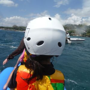 マリンウォークはやったことがなかったのですが、ちょうどキャンペーン価格で安かったので申し込みました。マリンウォーク・シュノーケリング・バナナボートが体験できました。ビーチではランチビュッフェを食べた後、ビーチで遊んだりシーカヤックか島内のサイクリングができました。私たちはサイクリングを選択、これが正解だったと思います。ガイドさんが先頭でみんなで一列になって走りました。島内の普通の暮らしを見られたし、島で一番古い寺院にも行けました。残念だったのは水中カメラをわざわざ買っていったのにマリンウォークではカメラを持ち込んではいけなかったこと。スタッフが専用のカメラで写真を10数枚撮って一人一枚はプレゼントしてくれるのですがそれ以上は1枚50000ルピア、全部ほしければメディアに入れたものを250000ルピアで買わなければいけません。シュノーケリングでは水中カメラを使えたので星4つにしておきます。