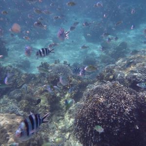 シュノーケリングで水上から、マリンウォークで水中からと二度、魚達と戯れることができて嬉しかったです。