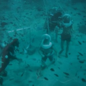 水中ヘルメット付けての水中探索は絶対にお勧めです。ヘルメットをかぶるだけの簡単な方法ですが、視界も広く綺麗な魚が目の前で見ることができます。