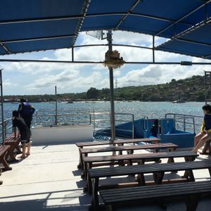 レンボンガン島への移動は比較的大きな船で、乗組員もよく訓練されているようできびきびと働いていました。ツアーを通してAEDを持ち歩くお医者様が同行しており、安心感があります。シュノーケリングやバナナボートなどツアー料金に含まれています。パラセーリングは別料金でしたが日本円で3000円程度で体験できます。大きな船なのですが、特に帰りはかなり揺れて、結構な数の人が戻していました。船酔いに弱い方は注意が必要です。