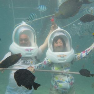 マリンウオークは長めの時間で写真を撮ってくれて、餌を撒くので魚は沢山