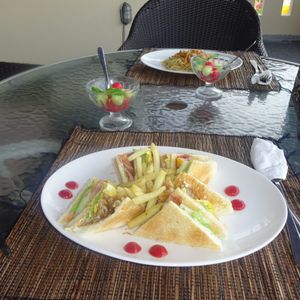 サービスの食事もミーゴレンとサンドイッチをお願いしたのですが、日本人の口に合う味でとてもおいしかったです。