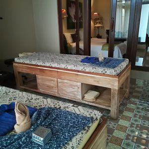 娘と二人で3時間コースを受けました。私も、娘も、感想は「う~ん」という感じです。つぼが外れたマッサージで、バリ島で4箇所で受けたマッサージの中で、唯一次の日の朝、もみ返しの痛みが出ました。私を担当してくれた人は、指先か爪が割れていたのか、オイルを付けていても、指先のぎざぎざな感じが肌にあたり、気持ちいいどころではありませんでした。全体的に、マッサージのレベルアップのための教育が必要だと思いました。笑顔で接してくれ、夜遅くまで一生懸命してくれているので、直接文句は何も言えませんでしたが、二度と行きたくないと思いました。また、終わって部屋を出たら、そのまますぐに車に乗せられホテルへと送っていただきましたが、他のスパと違ってなんだか、なんだかせかせかした感じでした。