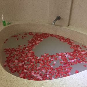入るとまず目に入ったのが開放感ある内装とお洒落なバスタブ!こちらでフラワーバスが利用できるようでした。日本の風呂と比べるとやはり質は落ちますけが十分かと。