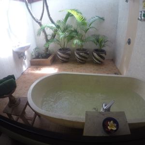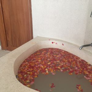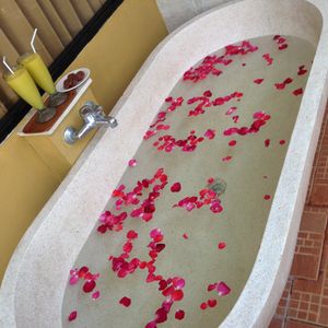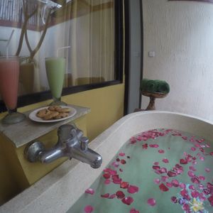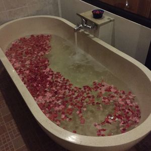 娘と二人で利用させていただきました。一度、フラワーバスとやらに入ってみたくて。フットバスから始まって、うつ伏せ、上向きとオイルでマッサージしてもらった後、部屋の外のバスルームへ移され、紙パン一丁で娘と「なにこれ…。」ってハモっちゃいましたw 無造作に置かれた一人入ったらいっぱいのバスタブと壁へ固定されたシャワーヘッド。花びらはパラパラ。「広告と違うじゃん(ToT)」仕方ないので一人バスタブへ入って一人シャワーの順番待ち。なぜかしょっぱいシャワーを浴びながら娘に「フラワーバスどーお?」って聞いたら「なんかビミョ」って。日本円にして一人5000円もだしてまた来たいかって聞かれたら答えはノーですね。