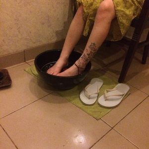 コースはフットバス5分、フットマッサージ25分、全身アロママッサージ90分のコースにしました。フットマッサージは、痛気持ちい感じで、ツボに入っていく感じでした。