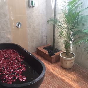 マッサージ後は部屋に備え付けのシャワーでオイルとハチミツを洗い流し、バラのバスタブで南国気分♪♪♪