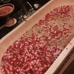 フラワーバスは友人と一緒でしたが、水面いっぱいお花が浮いていて、チョコクッキーとジンジャーティを頂きながらの至福のひとときでした。