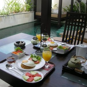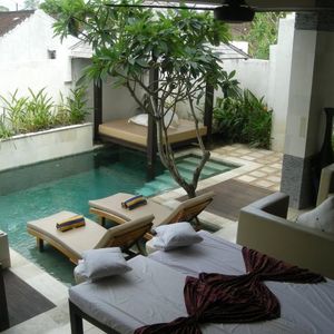マッサージの後はフェイシャル♪バリニーズマッサージやフェイシャルは、ヴィラのプライベートプールサイドで受けることができます。とても気持ちよくて、ついウトウト。。