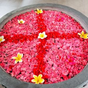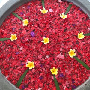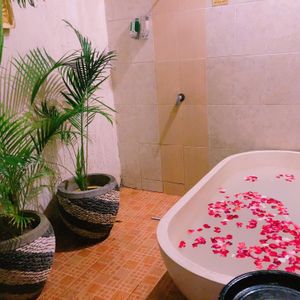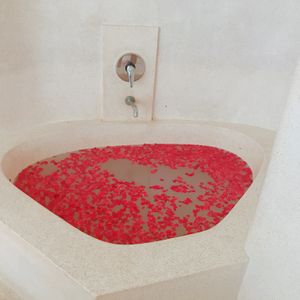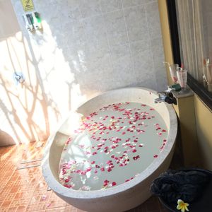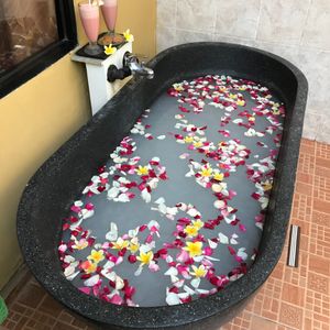 全身のジェルやハチミツを付けてのケアマッサージをして、途中でフラワーバス(花びらが散りばめられてる)で身体を流しました。