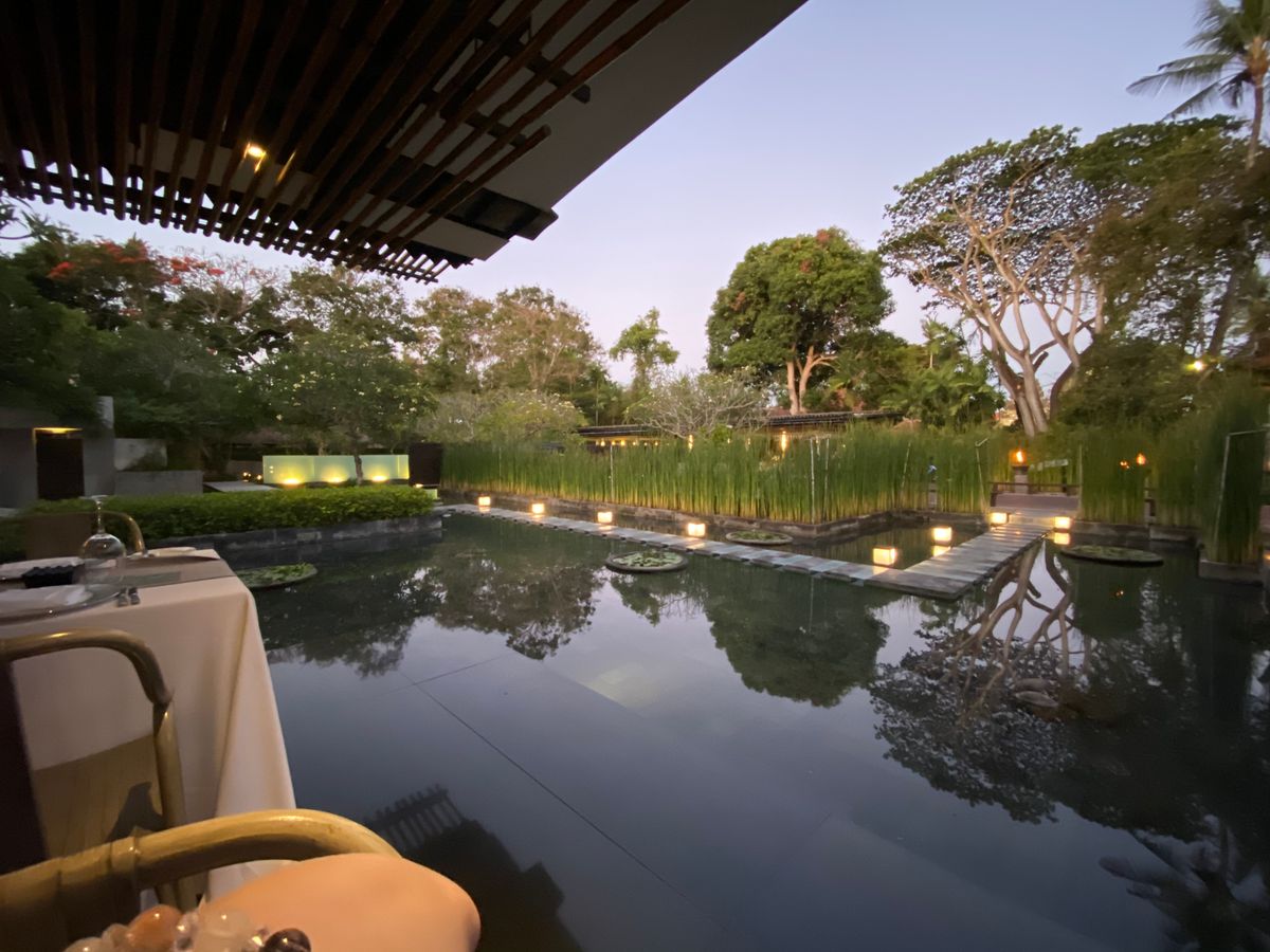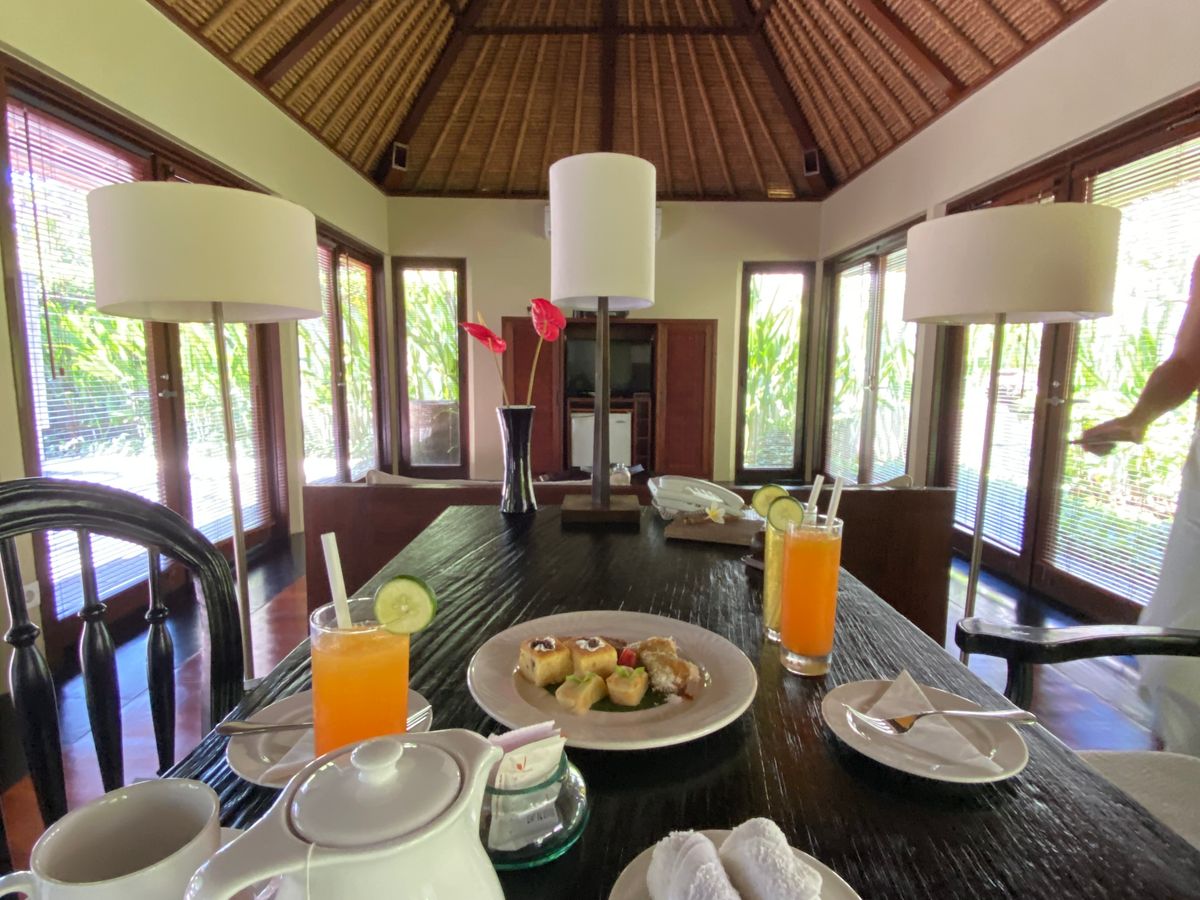クタから移動を希望して送迎も申し込みいました。お迎えも時間通りに来ていただき楽しくお話をしながら向かいました。ヌサドゥア地区へ入るときにセキュリティチェックがあり、治安が守られていて静かな場所だと感じました。ヴィラ内に入るともっと静かで別世界に来た感覚になりました。ホテルスタッフは日本人の女性の方が丁寧に案内説明していただき、アフタヌーンティーや冷蔵庫内のソーダもビールに交換してくださいました。スパも丁寧に対応していただき気持ちよかった。レストランも非常に綺麗で美味しく戴きました。ルームサービスも良かったです。