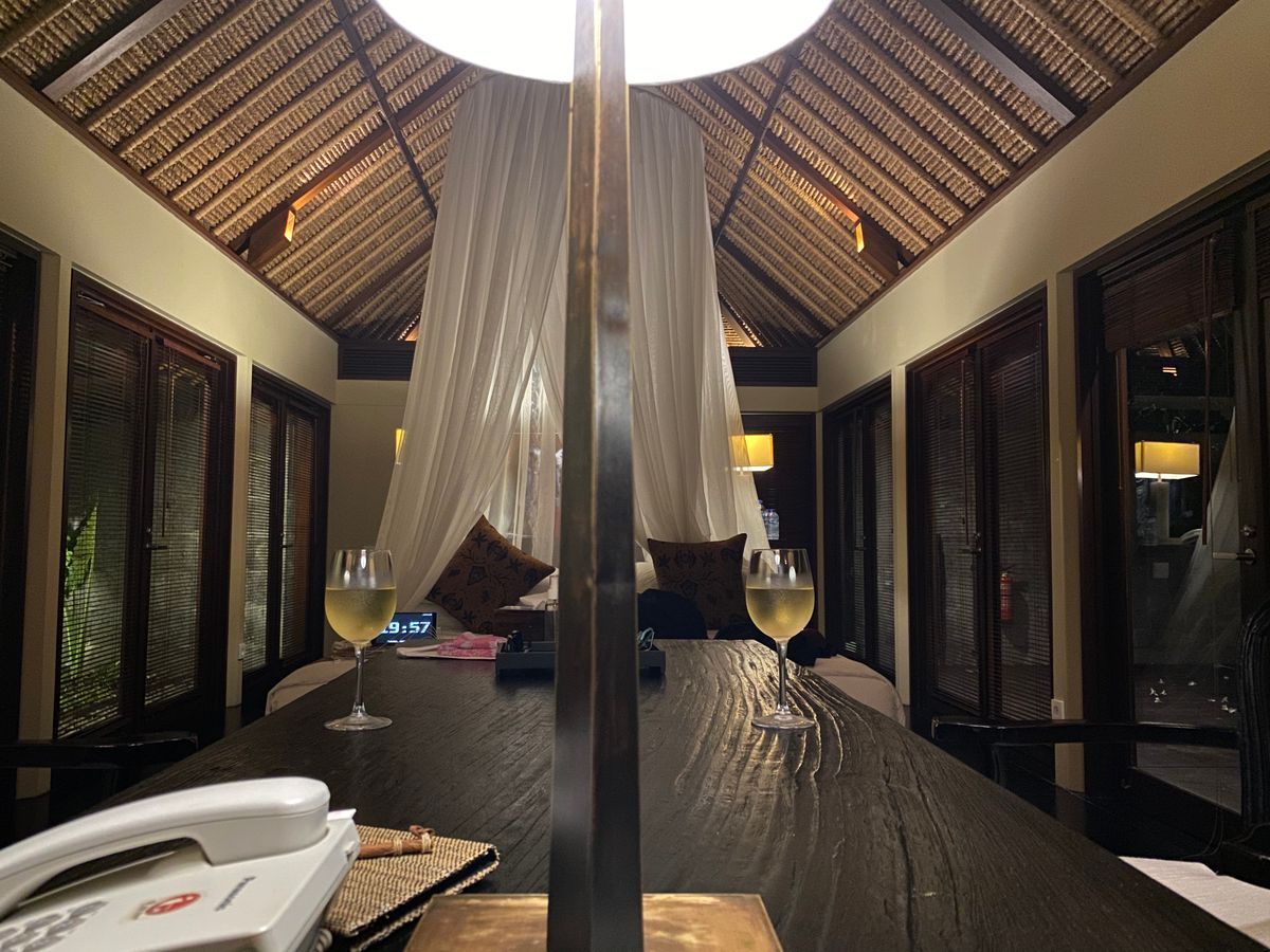 いつもバリ旅行の帰りは夜中便(ガルーダ)となりますが、遊び疲れた体を最終日の夕方にリゾートホテル内の海が見えるスパで過ごせました。180分のメニュー(選択可能)で、とても快適な最終時間を堪能しました。