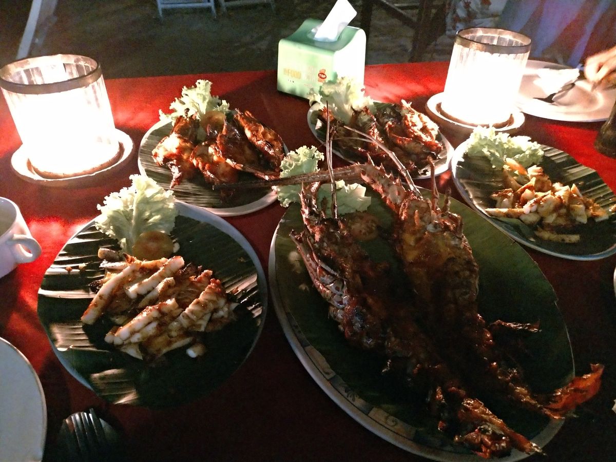 ウルワツの夕日を見てケチャックダンスは見ずに、ガイドさんにお願いしてジンバランのシーフードレストランに直行。