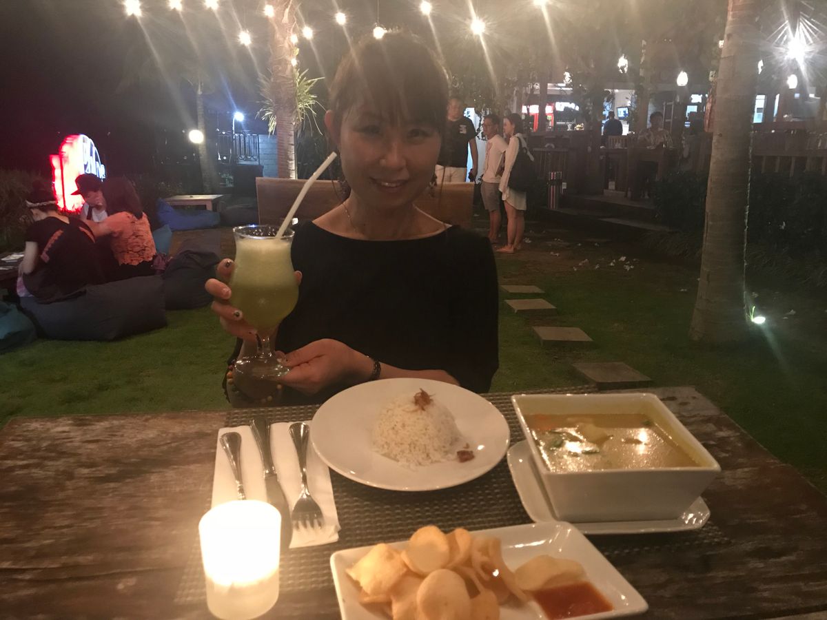 担当ガイドも渋滞緩和を考えて、タナロット寺院近くで人気店での夕食おすすめした次第です。