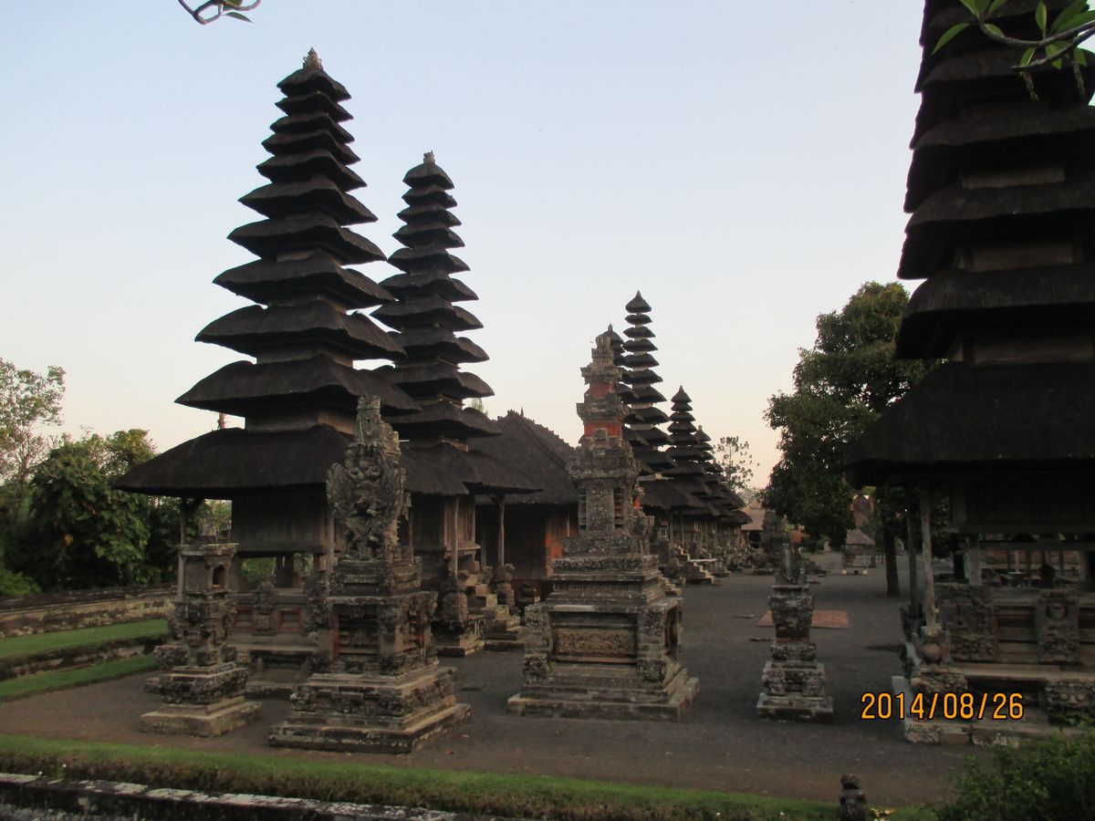 ゴアガヂャ→タマンアユン寺院→ガジュマルの木→タナロット寺院のコースで周り、他にシルバーのショップでガムランボールを見たり、棚田の景色を見ながらインドネシア料理のバイキングのランチを食べ、ジャコウネコの糞のコーヒーを飲み、最後には地元スーパーでお土産のチョコを買いました。
